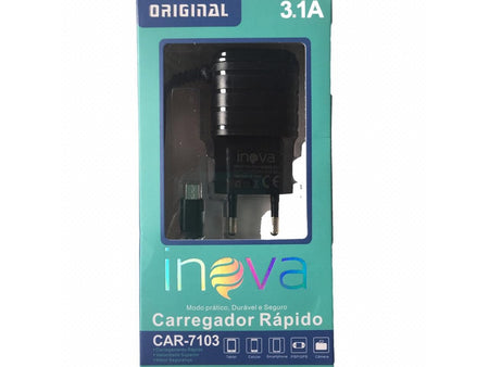 Carregador Rápido Usb Inova Original 3.1A Preto Car-10064 Com 2 Portas Usb