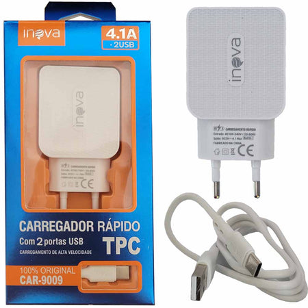 Carregador Rápido Usb Duplo Inova 3.1A Car-8254 Com 2 Portas Usb- Branco