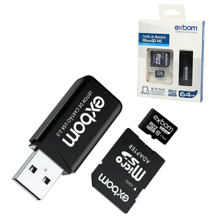 Cartão de Memória 64G Micro-SD -TF 10mbs STGD-TF64G 03067 Exbom Com Leitor de Cartão e Adaptador