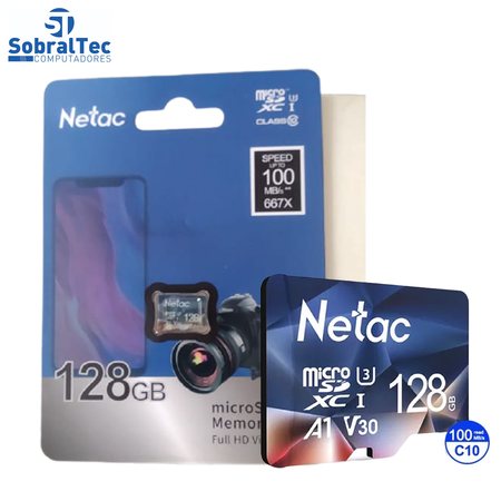 Cartão Micro SD Classe 10 U3 SDXC Netac 64Gb 100Mb/s De Leitura Com Adaptador SD