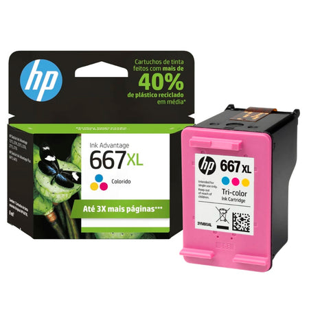 Cartucho HP 667 XL Colorido Original (3YM80AL) Para HP Deskjet 2376, 2774, 2776, 6476