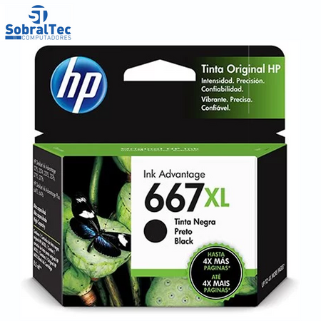 Cartucho HP 667 XL Preto Original (3YM81AB) Para HP Deskjet 2376, 2774, 2776, 6476