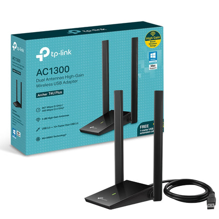 Adaptador USB Wi-Fi TP-Link Archer T4U Plus AC1300, Dual Band 2.4/5GHz, Antenas High-Gain, USB 3.0