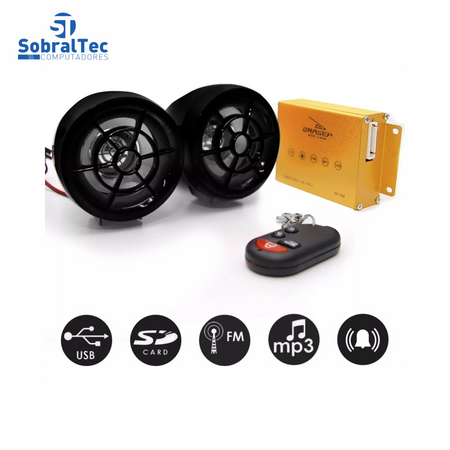 Alarme Para Moto Usb Com Rádio FM Entrada Cartão e Caixa De Som Grasep Dm-100