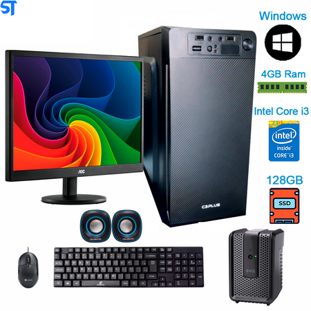 Computador Core i3-3240 SSD 128GB Ram 4GB Gabinete C3Tec Monitor 15.6" Teclado Mouse e Caixa De Som