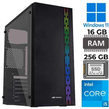 Computador Core i5-2400, Memória RAM 8GB, SSD 256GB, Gt-H61 Com Slot M2, Rede Gigabit, MT-34BK, Windows, MousePad Brinde