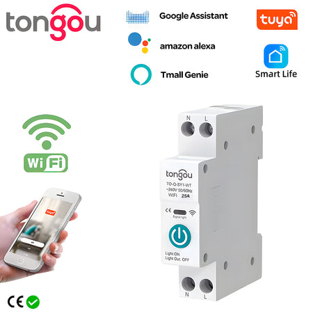 Disjuntor Inteligente Wi-Fi 25A, Compatível Com Google Assistant e Alexa, Tongou, S/ Medição, Branco
