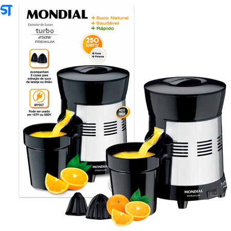 Espremedor Extrator de Sucos Mondial, Turbo 250W Black Premium, Bivolt - E-10