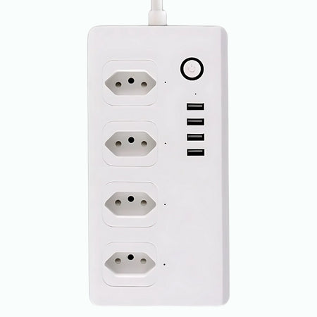 Extensão Inteligente, Zigbee 3.0, Com 4 Tomadas, 4 Portas USB, Cabo 1.5 Metros, Anti Surto, APP Tuya, Branco