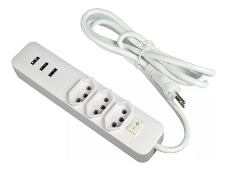 Extensão Tomada Multifuncional De 3 Conexões Antiestática Com 3 Portas Usb 2.0 1,5m