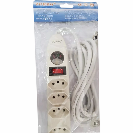 Filtro De Linha 5 Tomadas Medidor De Tensão Interruptor 2M 10A 250V 3 Pinos Zorro SL-7605