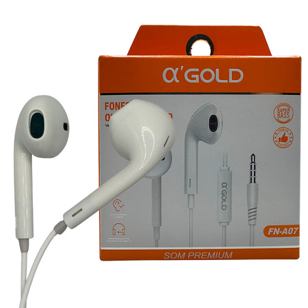 Fone De Ouvido Stereo, com Microfone, Super & Deep Bass, Fio 1.2 Metros, A'Gold, FN-A07 - Branco