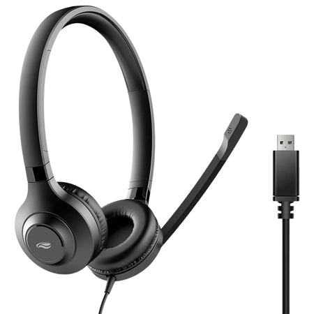 Fone Headset USB PH-360BK C3Tech, Som Estéreo, Cancelamento de Ruído ENC, Controle no Cabo, Preto