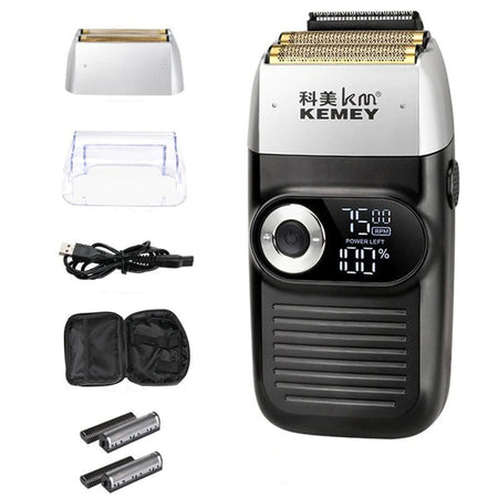 Barbeador Elétrico Masculino Á Prova D'água Remoção de Pelos Kemei 1400 mAh Com Duas Lâminas - KM-TX1 - Cinza