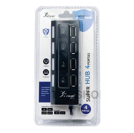 Hub Usb 2.0 Com 4 Portas Led Com Interruptor Suporta Dispositivos Com Até 500gb - XT-2066 Xtrad