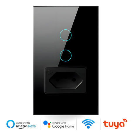 Interruptor Inteligente, Com Tomada, 2 Botões Touch, Wi-Fi, Compatível Com Alexa e Google Home, Avatto, Preto