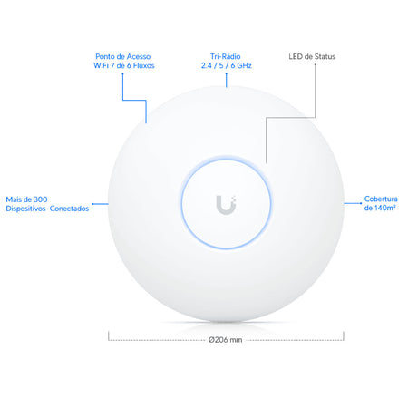 Acess Point Ubiquiti U7-Pro Tri-Band 2.4GHz (Até 688 Mbps) / 5GHz (Até 4300 Mbps) / 6GHz (Até 5765 Mbps) PoE+, Sem Fonte