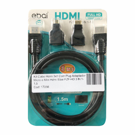 Kit Cabo Hdmi 3x1 Com Plug Adaptador Micro e Mini Hdmi Ebai FZF-HD 3 IN 1-1.5