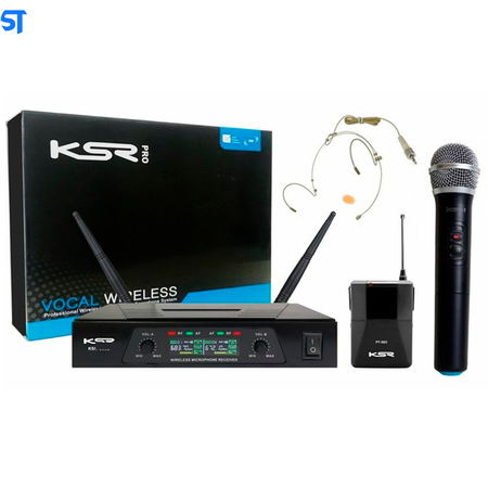 Kit Microfone Headset Sem Fio KSR KT02h + Receptor UHF Com 2 Antenas Com 2 Headset Kt3a e Transmissores