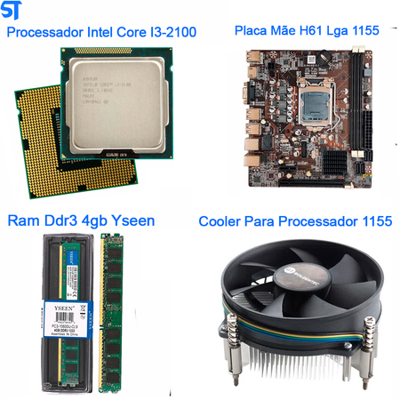 Kit Para Montagem de Computador- Placa Mãe- Processador Core i3 (2100)- Memória 4GB DDR3- Com Cooler