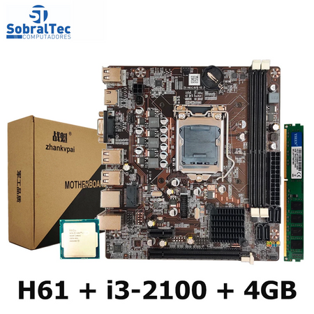 Kit Para Montagem de Computador- Placa Mãe- Processador Core i3- 2100 - Memória DDR3 de 4GB