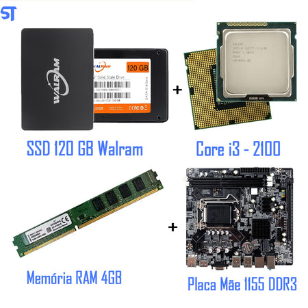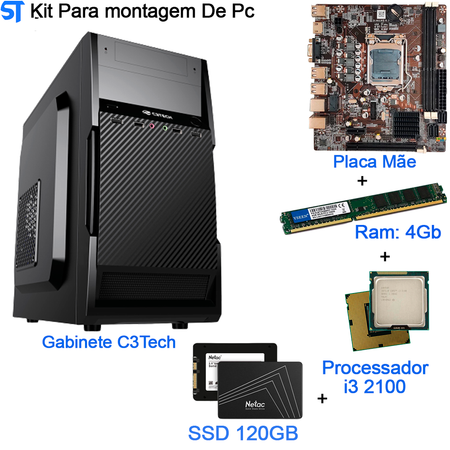 Kit Para Montagem de Computador, Placa Mãe, Processador Core i3-2120 , Cooler, Memória 4GB DDR3, SSD 120GB