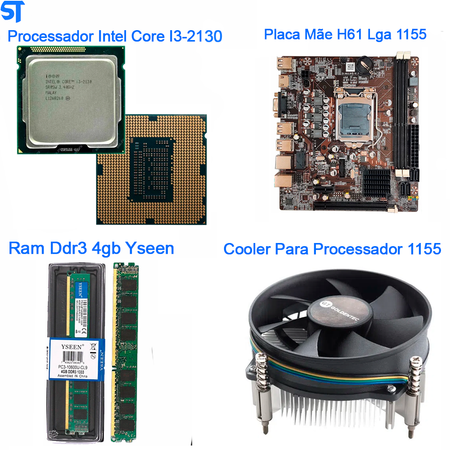 Kit Para Montagem de Computador- Placa Mãe- Processador Core i3 -2130- Memória 4GB DDR3- Com Cooler