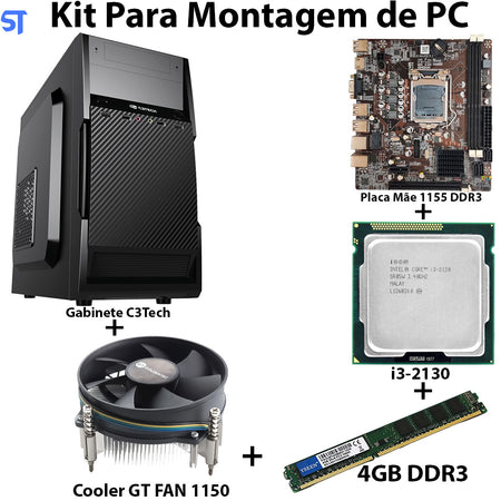 Kit Para Montagem de Computador- Placa Mãe- Processador Core i3- 2130+ Memória Ram 4GB- Gabinete ATX Com Fonte e Cooler