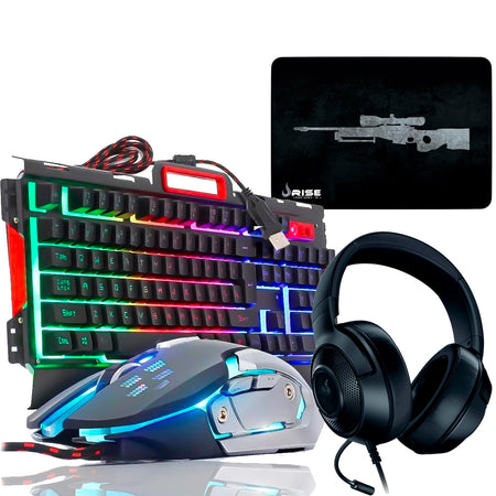 Kit Teclado e Mouse Gamer iluminação de LED e acabamento de Alumínio Com Headset e Mousepad