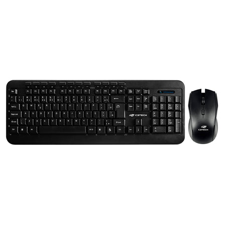 Kit Teclado e Mouse Sem Fio, K-W60BK, Multimídia, Teclado Membrana, Mouse 1.600 DPI, C3Tech, Preto