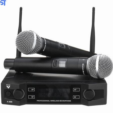 Microfone Profissional Sem Fio UHF Canal Duplo E Frequência Ajustável - A-666