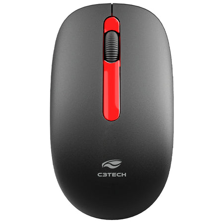 Mouse Sem Fio, Plug And Play, 1.200 DPI, M-W15RBK, C3Tech - Preto e Vermelho