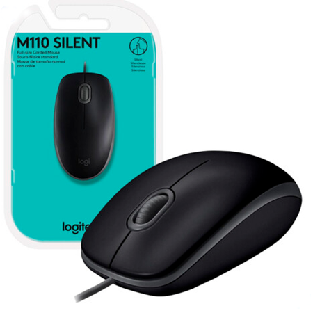 Mouse USB Logitech M110 Clique Silencioso, Design Ambidestro e Facilidade Plug and Play, Preto