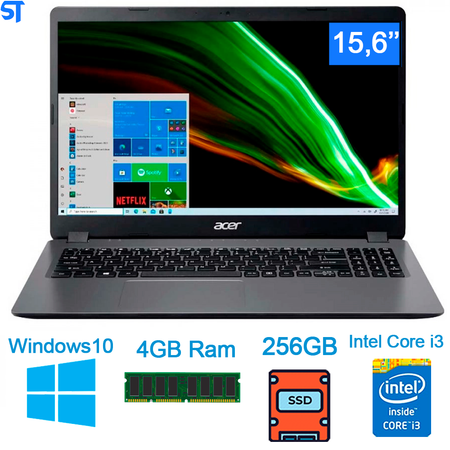 Notebook Acer Aspire 3 A315-56-356Y Intel Core i3 10ª Gen 4GB 256GB SSD 15,6' FHD Windows 10 Home