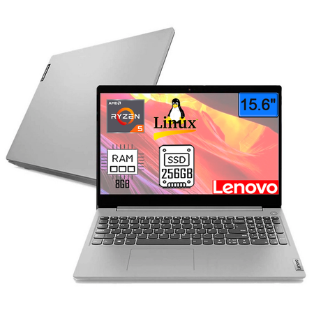 Notebook Lenovo IdeaPad 3-15ALC Ryzen 5-5500U -8GB RAM- 256GB SSD- 15.6" Linux Prata-82MFS00100
