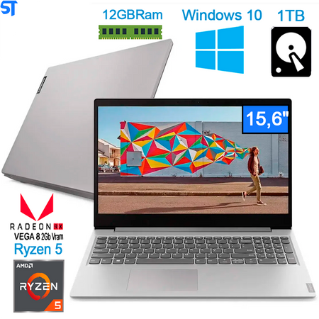 Notebook Lenovo Ideapad S145 -Ryzen 5-3500U- 12GB Ram -HD 1TB - 15,6" HD Antireflexo- RX Vega 8 -Prata Com Windows 10