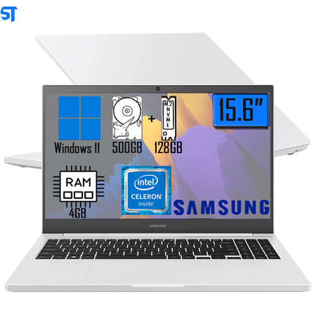 Notebook Samsung Book Intel Celeron 4GB- SSD M.2 de 128GB e 500GB HD 15.6" NP550XDA-KP2BR- Branco