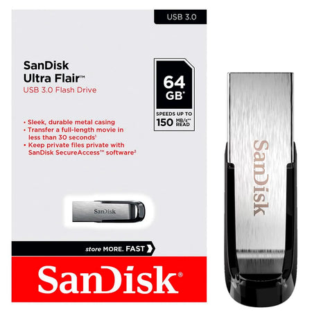 Pen Drive SanDisk Z73 Ultra Flair 64GB USB 3.0, Preto Metálico, 150Mb/s, Compatível USB 2.0 - SDCZ73-064G-G46
