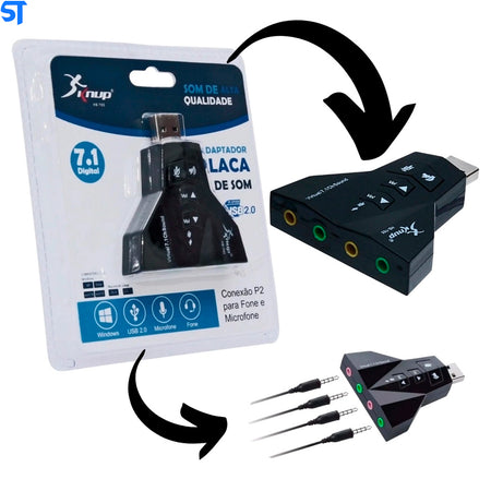 Placa De Som USB Externa, Adaptador de Audio USB SKNUP HB-T65 Som Virtual 7.1 Microfone