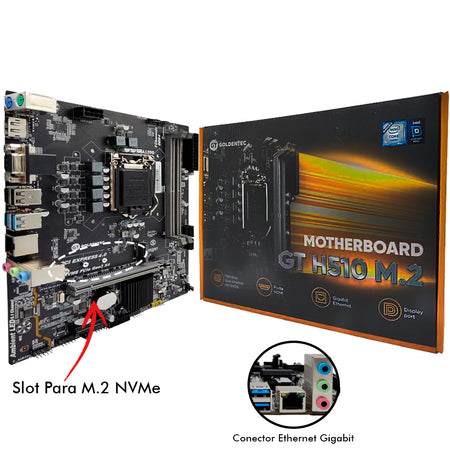 Placa Mãe GT H510 M.2- Soquete 1200 - DDR4 - Dual-Channel Até 64GB - Com Slot Para SSD M.2 NVMe - Rede Gigabit