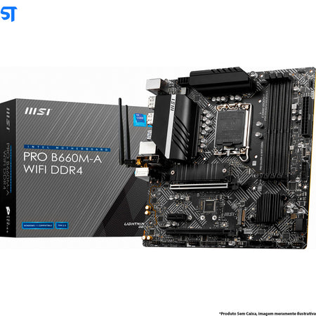 Placa mãe MSI PRO B660M-A WiFi DDR4 (mATX, soquete LGA 1700, DDR4, PCIe 4, LAN 2,5G, slots M.2, Wi-Fi 6) OEM S/Box