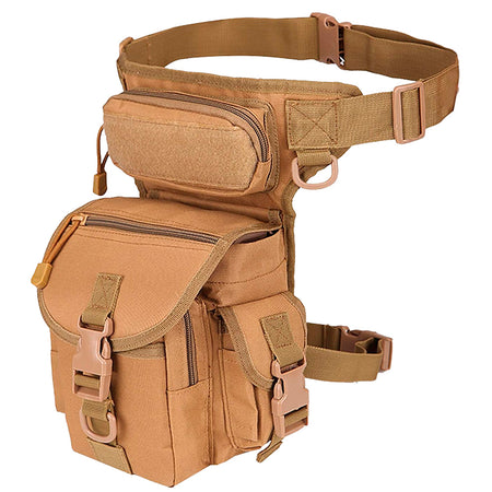 Pochete de Perna, Militar Com 7 Bolsos, Impermeável Com Ajuste de Tamanho, Multiuso - Bege