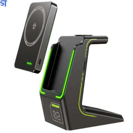PowerBank MacSafe para iPhone 12, 13, 14 4 em 1 com Bateria Externa 10000mAh - Preto
