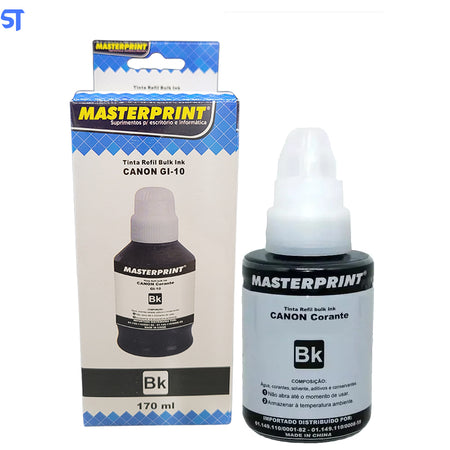 Refil de Tinta Compatível Canon Bulk Ink GI-10 Corante Preto BK 170ML MasterPrint
