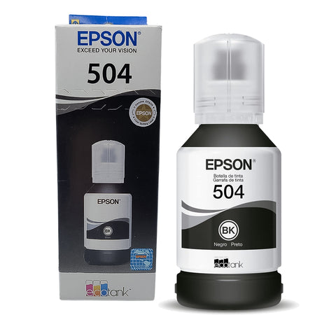 Refil de Tinta Epson Preto 504 Original T504 127ml Para Ecotank L4150 / L4160 / L4260 / L6171 / L6161 Na Caixa
