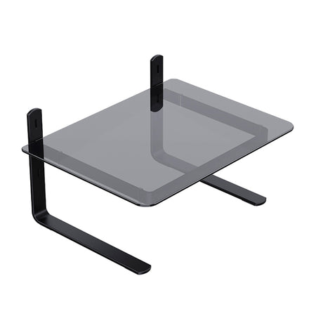 Suporte Para Monitor Ergonômico Ajustável, Office, Conforto e Estabilidade, Preto com Vidro Incolor - Reliza