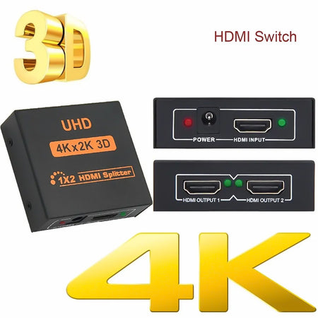 Switch Duplicador Splitter Hdmi 1 Entrada X 2 Saidas Divisor 4K 1.4 3D Hub