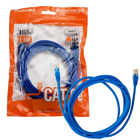 Cabo de Rede CAT5e, 2.5 Metros, Patch Cord Azul, PC-ETHU25BL - PlusCable