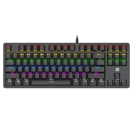 Teclado Mecânico Gamer HP GK200, LED, USB, Switch Blue, Painel de Metal, Preto - 9AJ57AA
