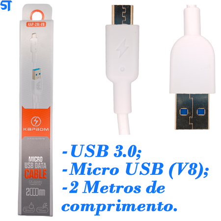 Cabo Micro USB V8 Kapbom Quick Charge 2x mais Resistente 2 Metros - KAP-2M-V8
